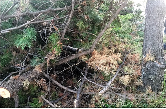 서귀포시는 제19호 태풍 솔릭으로 인한 해풍 피해가 발생해 소나무재선충병 예방 차원에서 제거가 이뤄졌다고 해명했다.