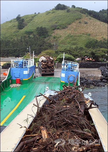 <사진2 : 비양도 방제작업후 제거목 이송장면 - 제주의소리 제공>